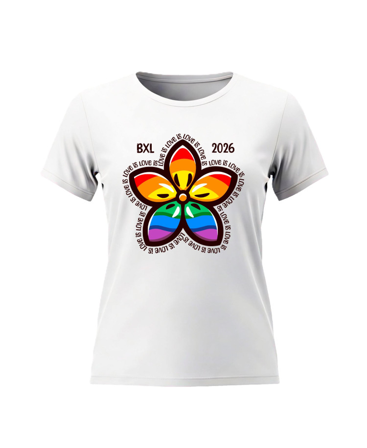 The Love Is Love – BXL 2026 Pride T‑shirt celebrates the power of love and the beauty of diversity.