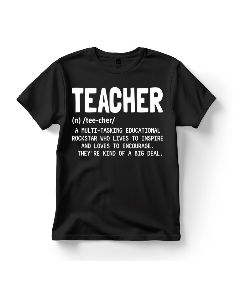 This printed T‑shirt presents a fun dictionary‑style definition of the word “Teacher”, reading: